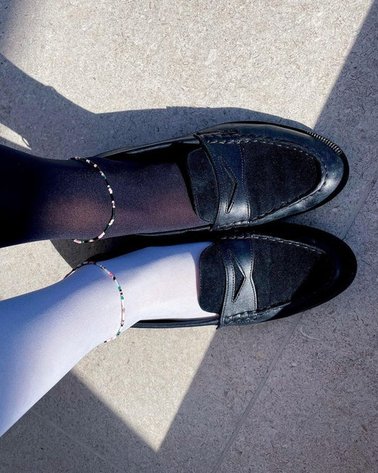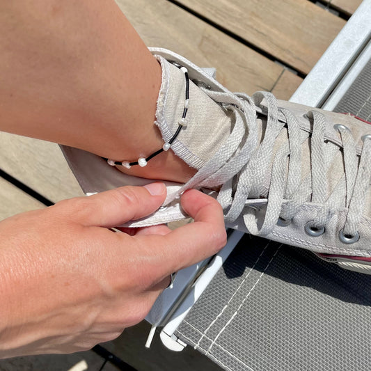 Design driven and fashionable yet understated dainty anklets made from Japanese glass beads and gemstones to wear the whole year round – as well as over the socks – to elevate your look and add a subtle sexy detail to your style.