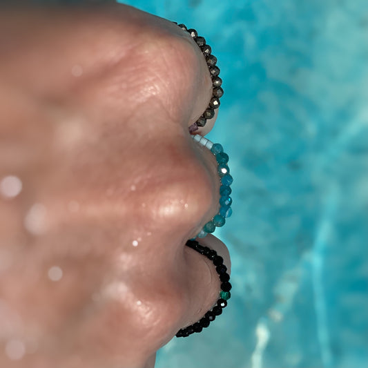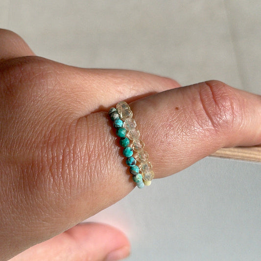 Hurray to the easy ring! Just shiny gems dancing around your finger. No hurting when it’s hot, no slipping off in the cold. Fantastic natural colors and pure joy.