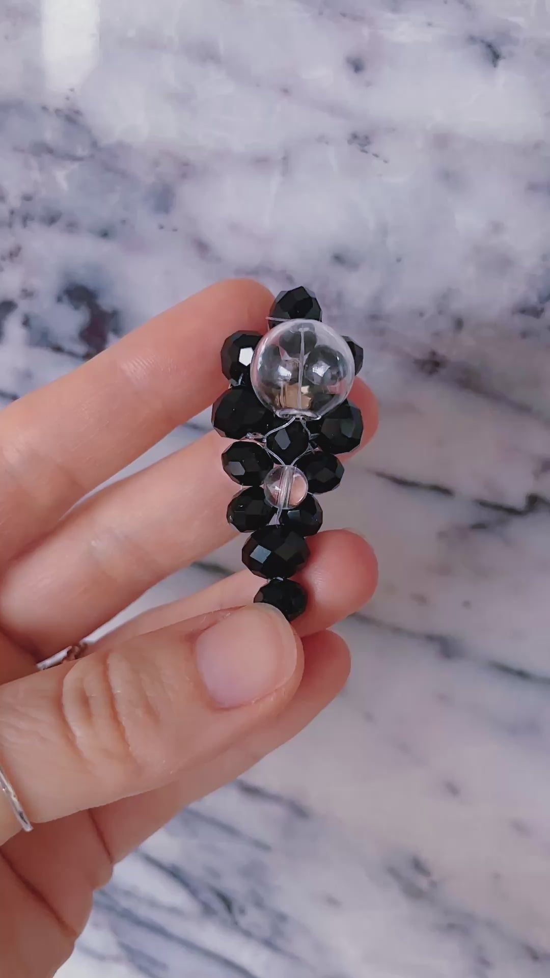 Upcycled glass crystals and handblown glass sphere. Magnet fastening. This piece is one of a kind.